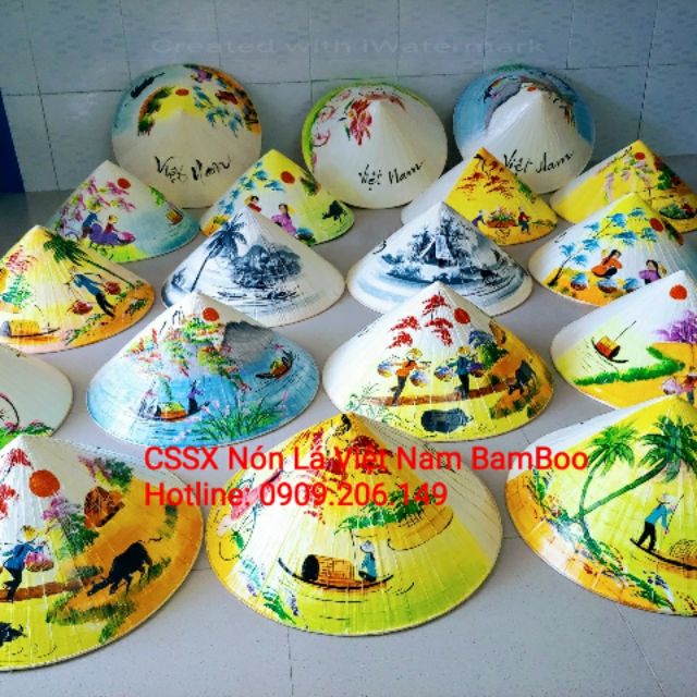 Bộ 5-10 nón lá vẽ phong cảnh 40cm ngưới lớn loại Huế tốt trắng đẹp